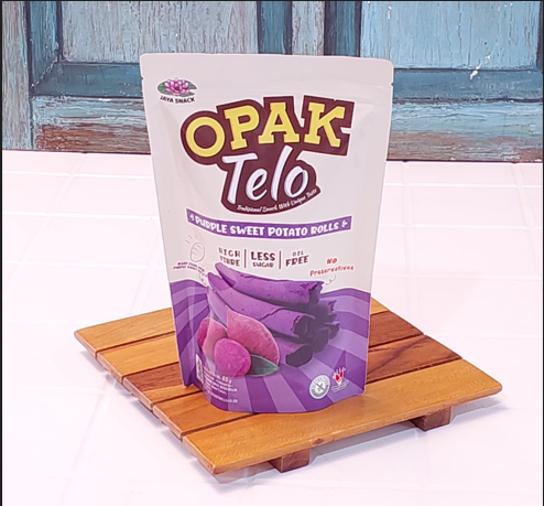 Opak Telo has a selection of quality raw materials, namely Purple Sweet Potato and Honey Sweet Potato, making it a nutritious and delicious snack that is currently popular. Both are rich in antioxidants and fiber, making it a promising traditional snack. Opak Telo is gluten-free, oil-free, dairy-free, low in sugar, without added sugar, and without preservatives.